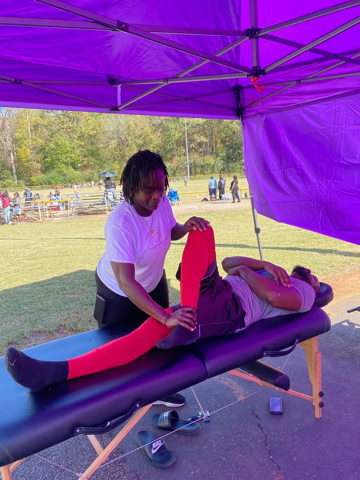 Muscle Masters can be present at sporting and community events and tournaments to provide that extra tool to prepare athletes and competitors for high intensity activities. We arrive with tents, massage tables, seated massage chairs, compression boots, and rapid muscle activation tools to perform pre and post sports massage and stretching.